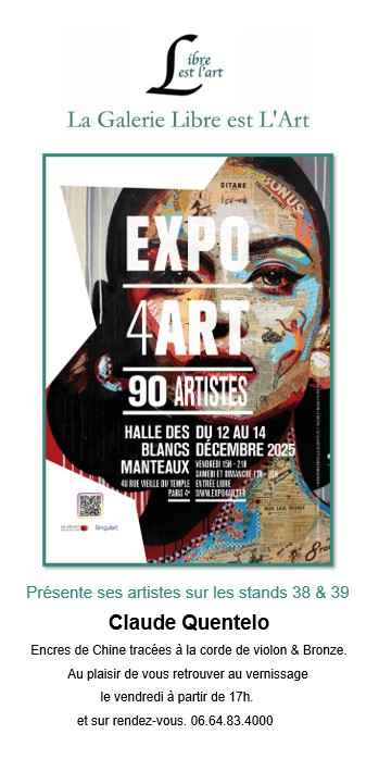 Nous avons le privilège d’accueillir Claude Quentelo dans notre galerie et sa collection d’œuvres divines et innovantes.